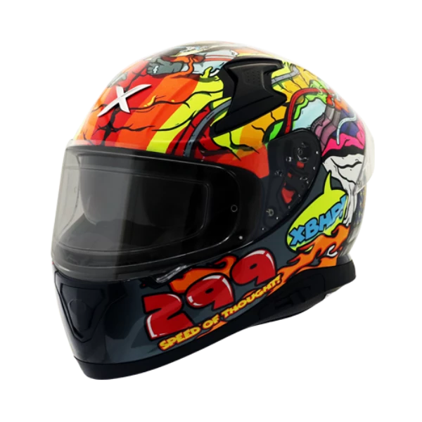 xBhp has always been about advocating safe riding. So it was inevitable that xBhp would design its own helmet. And that happened last year in 2019 along with Axor Helmets on the occasion of 16 years of xBhp! And this year xBhp is out with the second xBhp | Axor Helmet, and we call it the Speed of Thought. We all love to speed on motorcycles. However, there is nothing faster and powerful than our own minds. And therefore we must obey the rules of the road. And that is the foundation of the design of our second helmet. The 299 shows the ‘magic number’ or the ‘hand of God’ which had been decided by the manufacturers to be the limiting speed of modern superbikes. And below that, it reminds you, that nothing is faster than your imagination. So why put your brain and body at risk by overspeeding on roads? The top of the helmet has a biker wearing the first edition of the xBhp helmet. The back retains xBhp’s iconic philosophy of I, the Biker. The rest of the elements show the most important part of the motorcycle, the heart, its engine, and exhaust pipes blurting out flames, which are the equivalent of the incredible creativity the human mind is capable of outputting. The better part of the helmet shell is covered with the human brain which it protects and the lightning bolts behind accentuate the neurons inside our brain.