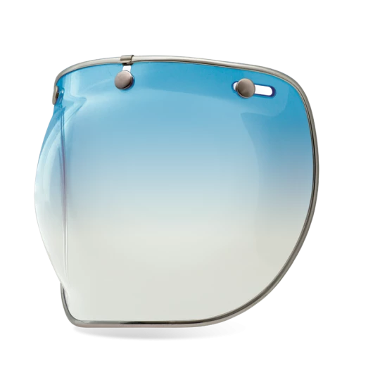 The new Bell Three-Snap Shield is a throwback-style, full-coverage polycarbonate shield that fits the Bell Custom 500, R/T and Shorty helmets. The shield features a stable 3-snap design, NutraFog anti-fog, anti-scratch and UV-protected shield. Classic cafe style, DLX shield features chrome trim.
