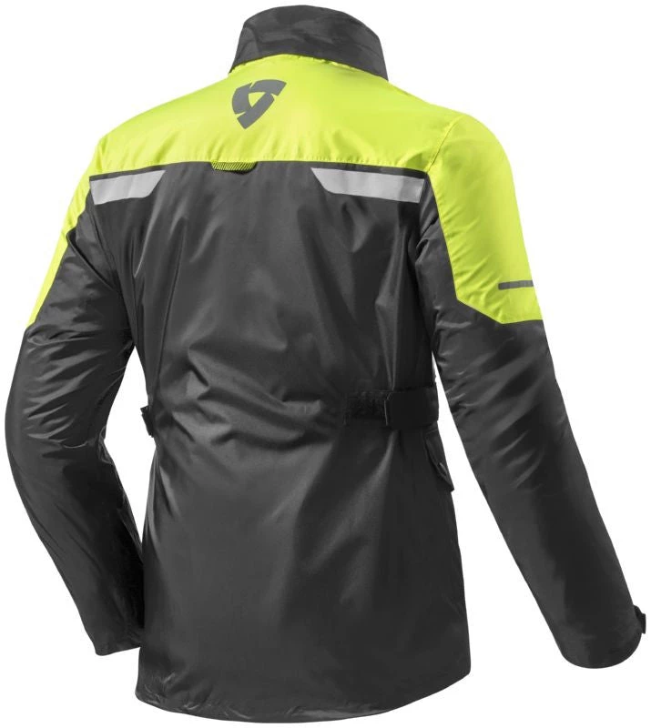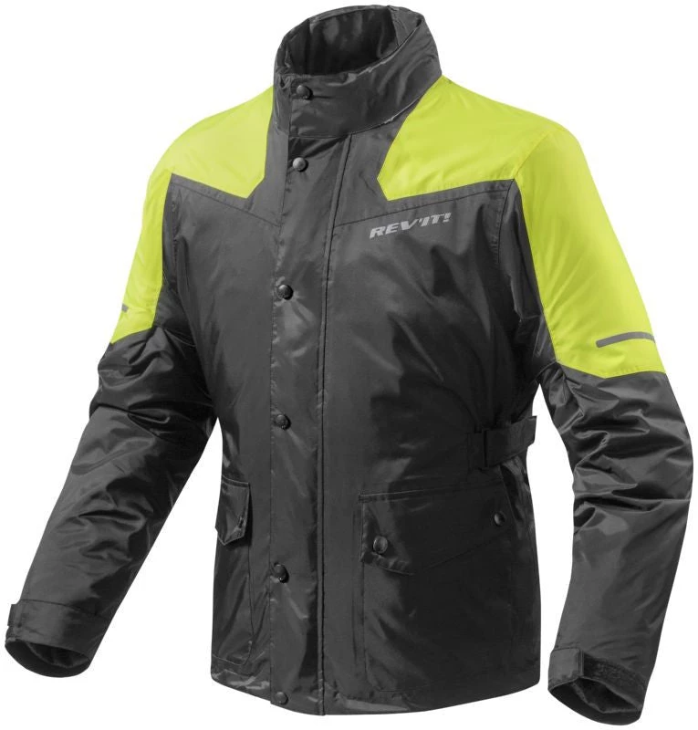 The Rev’it! Nitric 2 Rain Jacket is a different take on rain gear design. The classic overcoat cut looks exceptional, with two large outside waterproof pockets, reflective inserts and a stow-able hood, the Nitric 2 Rain Jacket not only looks great, but gives you a functional piece of 100% waterproof gear that is guaranteed to keep you dry.Â