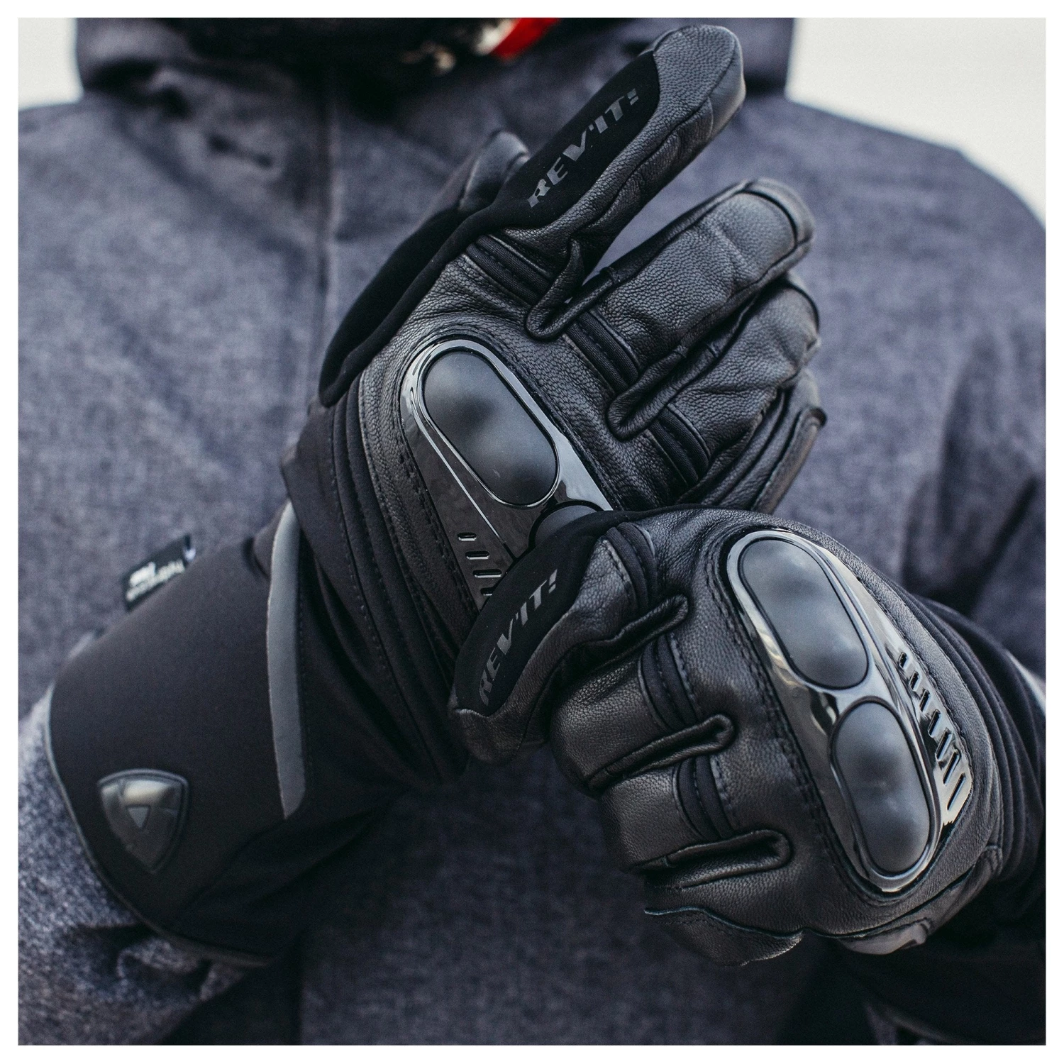 The Rev’it! Sirius 2 H2O Gloves offer serious protection against the weather. Hydratex waterproofing, Thinsulate G and Thinsulate C keep out water while keeping warmth inside the gloves. Thinsulate C on the palm side keeps your controls close and Thinsulate G on the back of the hand shores up the insulation where it is needed. TPU knuckles and palm sliders add protection where it counts. Goatskin on the palm handles the abrasion while still allowing you to feel your controls. PWR|shell twill stretch aids fit and improves comfort so you can keep riding. A basic visor wipe keeps your face shield clear.Â