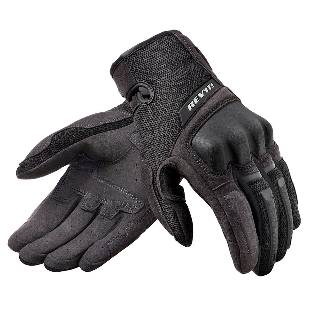 The Volcano Gloves from Rev’it! are the lightest ADV gloves in the Rev’it! collection with CE certification. Designed with a mix of on-road and off-road use in mind, the Volcano Gloves are more robust than a full dirt glove and feature a fortified microfiber synthetic palm. Air mesh on the back of hand keeps the hands cool and dry during high effort maneuvers. TPR knuckle sliders with Seesoft viscoelastic backing add protection. Temperfoam can be found again at the palm and thumb. A hook and loop closure keeps the gloves secure, and an oversized pull loop makes for easy entry.Â