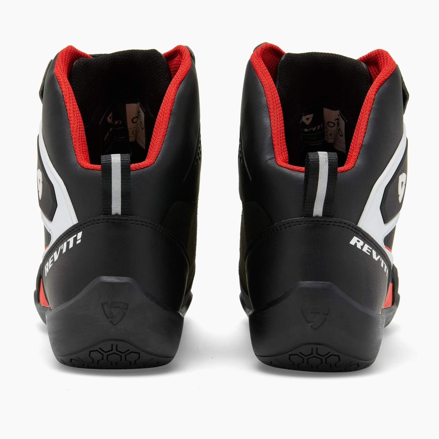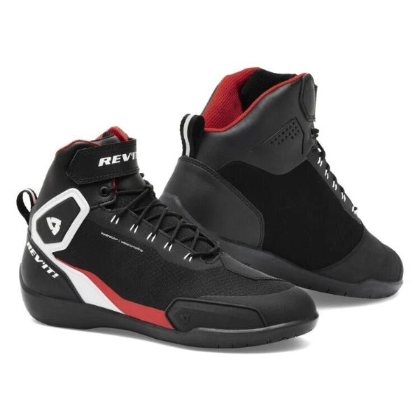 The G-Force H2O Riding Shoes take inspiration directly from the worlds of MotoGP and WSBK and distill racetrack style into a practical, everyday riding shoe. Rev’it! applies a barrage of materials to add protection, manage airflow and add a bold, technical style to the G-Force Shoes. A tough leather exterior, injected ankle cups and thermoformed heel cups and toe caps manage the shoes’Â safety component. The track styling ensures a snug, low profile feeling when on the foot, and the inclusion of the OrthoLite X40 insole adds overall comfort.