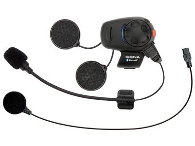 The SMH5 is a Bluetooth v3.0 Stereo Headset with Bluetooth Intercom designed specifically for motorcycles. With the SMH5, you can call hands-free on your Bluetooth mobile phone, listen to stereo music or voice instructions of GPS navigation by Bluetooth wirelessly, and have two-way intercom conversations in full duplex with a passenger or another motorcycle rider.