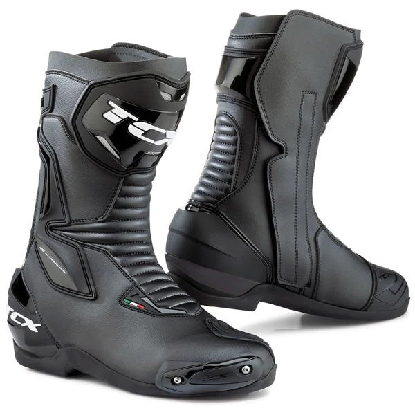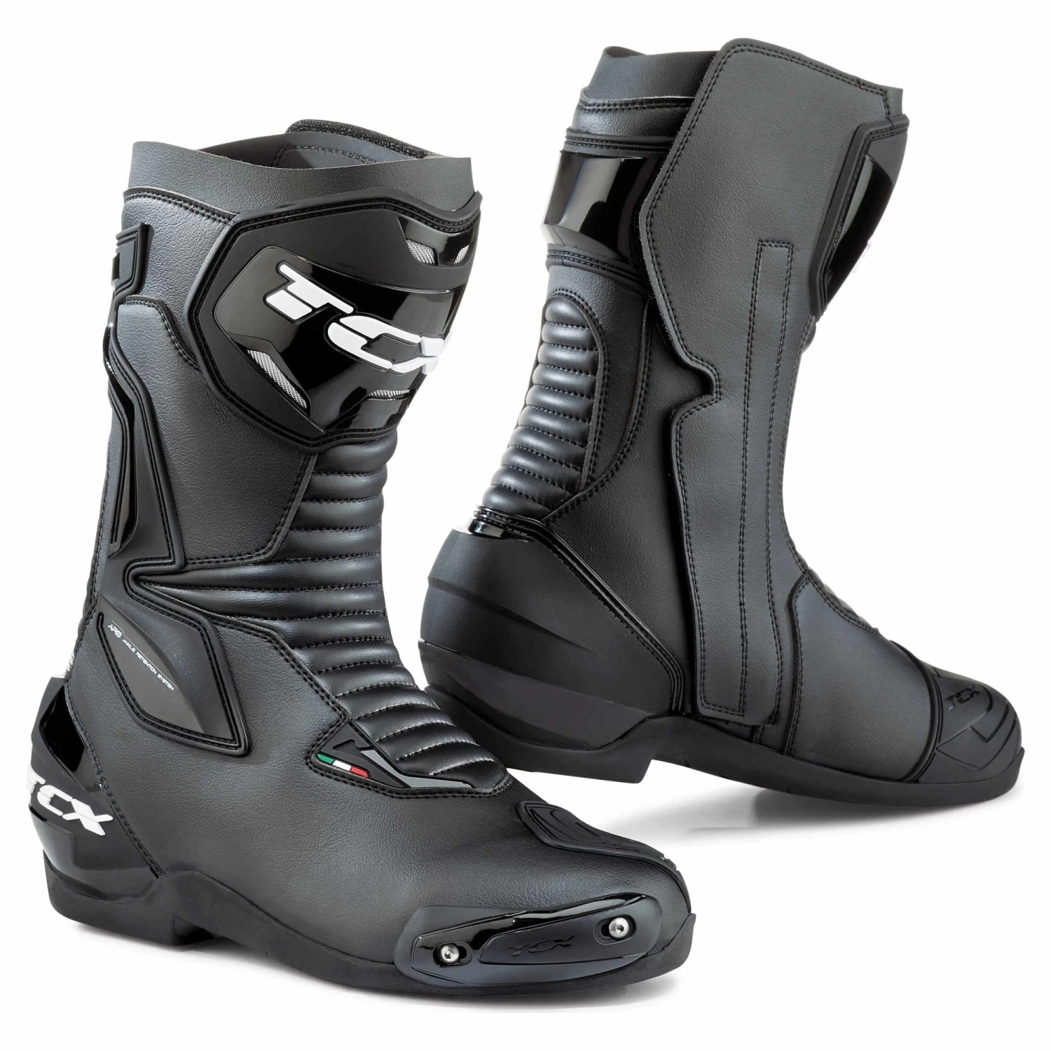 The TCX SP-Master Boots are built to balance sport performance with touring comfort. Featuring extensive accordion stretch bellows at the front and back of the ankle joint, the SP-Masters achieve excellent flexibility and control. Strategically-located polyurethane injection-molding offers protection at the shin, lateral malleolus, the heel counter, as well as the shift pad and replaceable toe slider.